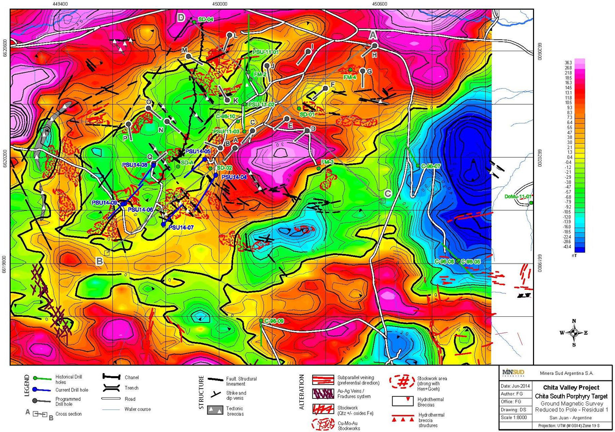 Also shown below for information purposes are previously reported Minsud drilling results (PSU11-series) from the Chita South area along with historical drilling data (SD and FM- series).