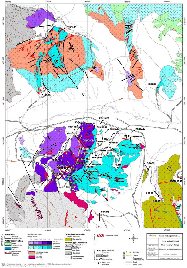 Map 1: Chita Porphyry Surface Geology and Drill Hole Locations