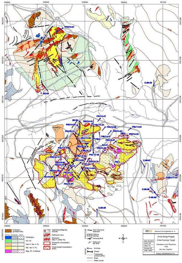 Map 2: Chita Porphyry Surface Alteration and Drill Hole Locations
