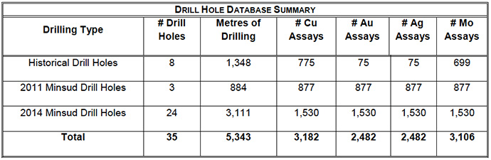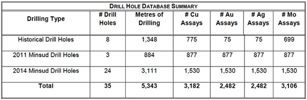 Minsud plans to continue investigating the commercial possibilities for processing and recovering the key metals while at the same time conducting additional outline and definition drilling plan to further delimit the deposit and evaluate the grade distribution of the mineralization.